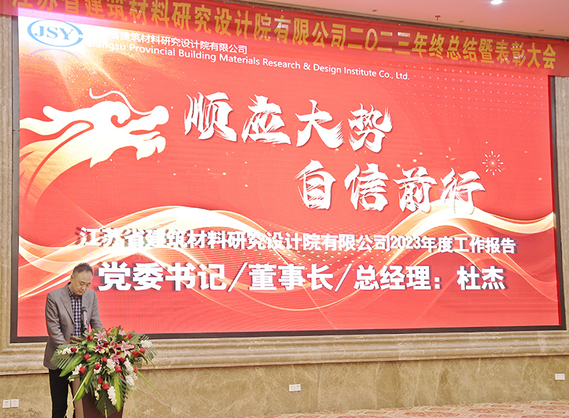 2024年1月24日下午,院公司2023年終總結(jié)暨表彰大會(huì)在華江飯店華江廳召開。江蘇中江國(guó)際投資有限公司董事長(zhǎng)、總經(jīng)理、院公司董事楊軍,中江國(guó)際集團(tuán)黨委組織部(人力資源部)副部長(zhǎng)、人力資源公司總經(jīng)理、院公司董事田忠秀,南京大學(xué)法學(xué)院黨委副書記、院公司獨(dú)立董事馬駿,國(guó)家市場(chǎng)監(jiān)管總局、住房和城鄉(xiāng)建設(shè)部、工業(yè)和信息化部夏熱冬冷地區(qū)綠色建材產(chǎn)品認(rèn)證技術(shù)委員會(huì)秘書長(zhǎng)李安良,中江國(guó)際集團(tuán)審計(jì)部部長(zhǎng)助理、院公司監(jiān)事侯超,院公司黨委書記、董事長(zhǎng)、總經(jīng)理杜杰,院公司副總經(jīng)理葉明武、張國(guó)華,院公司總經(jīng)理助理郁超,院公司財(cái)務(wù)負(fù)責(zé)人陳立俠等領(lǐng)導(dǎo)、嘉賓及全體員工160余名出席大會(huì)。